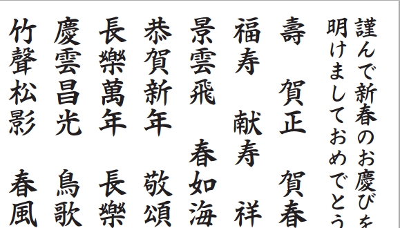 使用できる文字は年賀状関連の限定ですが、フォントが色々フリーで使えます。
